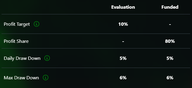 | Maximum Loss | 8% (Trailing) | 6% (Trailing) |