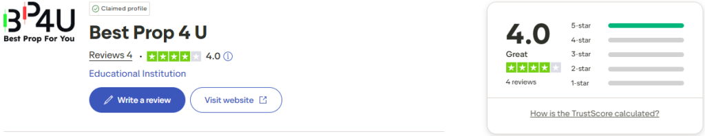 BestProp4U has gathered a great score on Trustpilot based on their community’s feedback.
