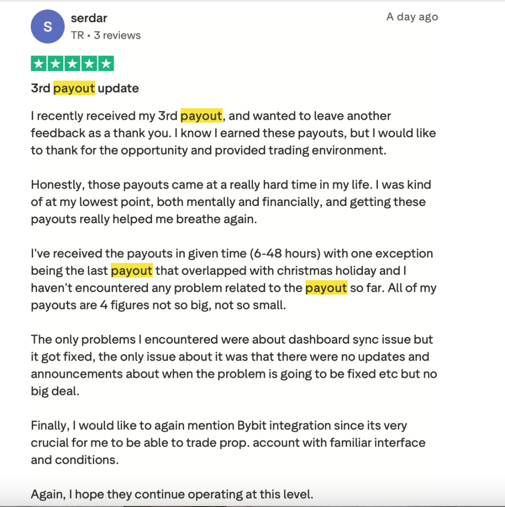 When it comes to Crypto Fund Trader payment proof, you can find it on numerous websites. One example is Trustpilot, where their traders comment regarding their experience while working with the company as well as the process of how they successfully received payouts. Another source of payment proof of Crypto Fund Trader is their Discord channel, where you can find numerous payout certificates of their most successful traders.