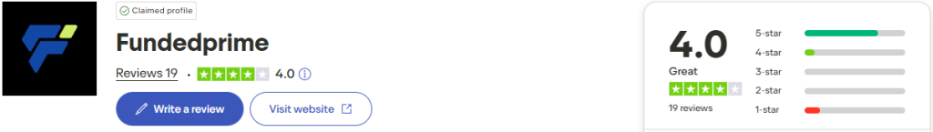 On Trustpilot, Funded Prime has numerous members of their community commenting and providing positive feedback regarding their company services. The firm has achieved an impressive rating of 4.0 out of 5 from a substantial pool of 19 reviews. Notably, 74% of these reviews have awarded Funded Prime the highest rating of 5 stars.