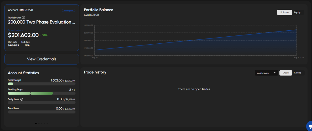 Funded Prime provides traders with a modern, well-structured dashboard that is available to every client. It delivers real-time updates on performance, risk, and objectives, refreshed every minute, giving traders clear insights and improved control over their trading journey.