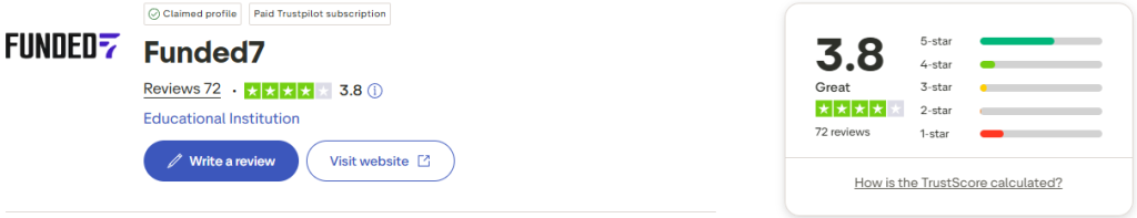 Funded7 has gathered a solid score on Trustpilot, based on feedback from its growing trading community.