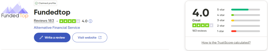 FundedTop has gathered a great score on Trustpilot based on their community’s feedback.