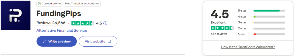 On Trustpilot, FundingPips has a large variety of its community commenting and providing positive feedback regarding its company services. The firm has achieved an impressive rating of 4.5 out of 5 from a substantial pool of 44,566 reviews. Notably, 81% of these reviews have awarded FundingPips the highest rating of 5 stars.