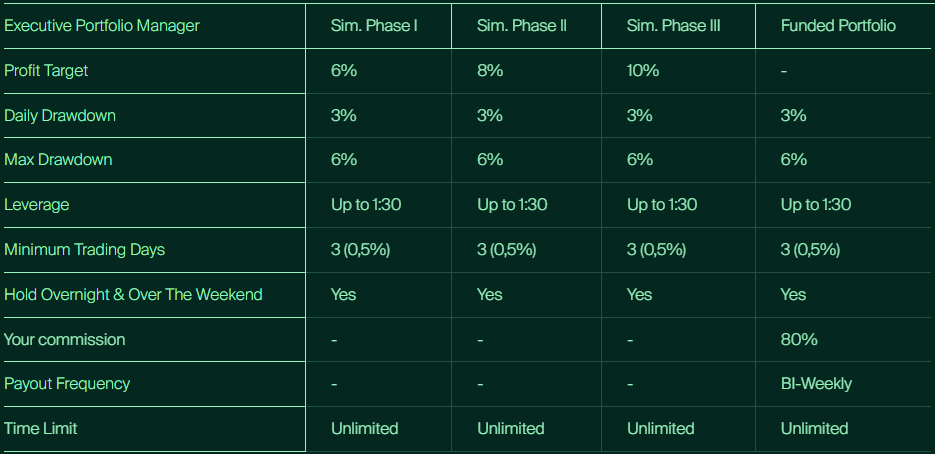 The evaluation phase requires a trader to reach a profit target of 6% while not surpassing their 3% maximum daily loss or 6% maximum trailing loss rules. When it comes to time limitations, note that you have no minimum or maximum trading day requirements during the evaluation phase. To proceed to funded status, the trader only needs to reach the 6% profit target without breaching the loss limits, after which the activation fee must be paid within 30 days in order to enter the funded stage.