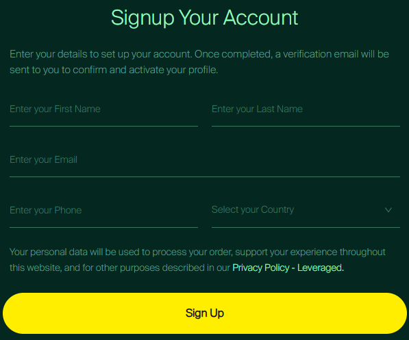 - Registration Form – Register with Leveraged by filling out the registration form with your personal details and logging into the dashboard.