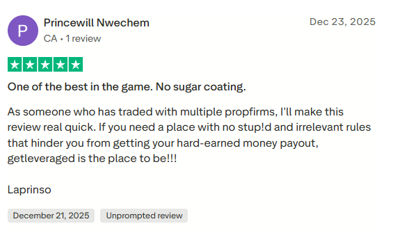 Another client, who has experience trading with multiple prop firms, described Leveraged as a standout option due to its straightforward rules and trader-friendly structure. They emphasized that the firm avoids unnecessary restrictions that can interfere with payouts, making it easier for traders to access their earnings. Based on their experience, the client strongly recommended Leveraged to traders seeking a fair and transparent prop firm.