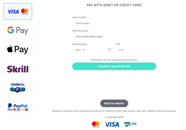 - Choose Your Payment Method – Choose between a credit/debit card and a cryptocurrency payment method.