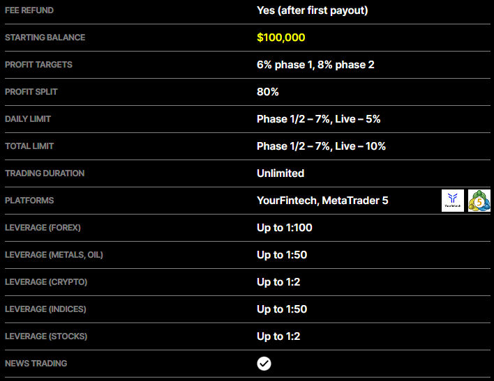 | Profit Target | ❌ | 10% (Withdrawal + Scale) |