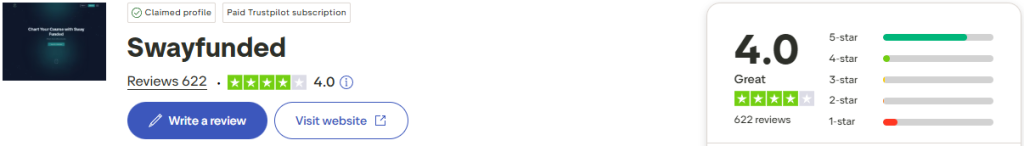 Sway Funded has gathered a great score on Trustpilot based on their community’s feedback.