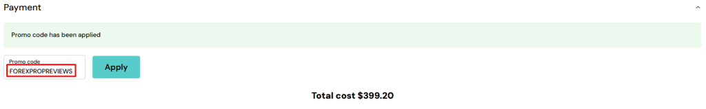 - Apply Discount Code – Apply our discount code FOREXPROPREVIEWS and enjoy a 20% discount on all funding program types.