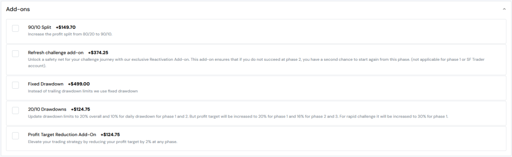 Add-ons for Sway Funded’s Regular Challenge
