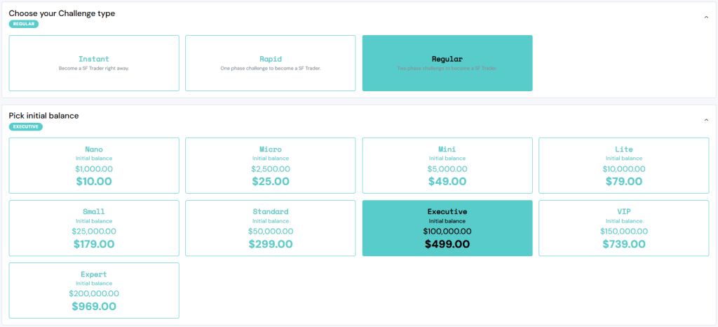 Sway Funded provides its traders with three unique funding program options: