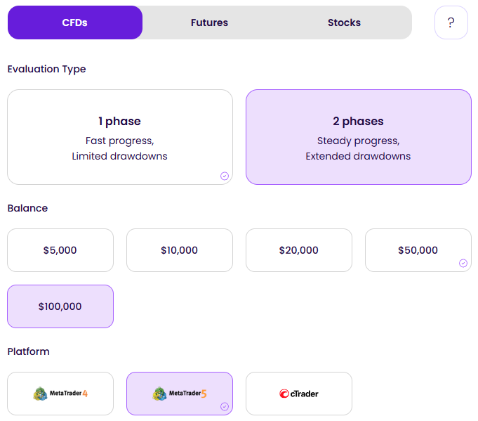 - Choose Your Account – Choose your account type, account size, and trading platform.