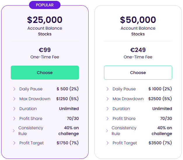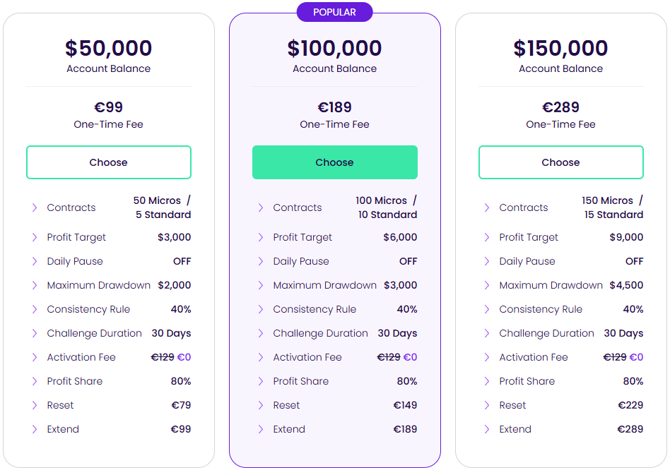 | Account Size | Price |