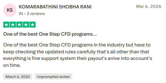 This review highlights a strong overall experience, particularly praising the One-Phase CFD program as one of the better options in the industry. The user also emphasizes reliable payouts and a solid support system, which are key factors for trader confidence. At the same time, the mention of needing to stay updated with rule changes suggests that traders should remain attentive to evolving conditions. Overall, the feedback reinforces The Trading Pit as a competitive and well-functioning prop firm, with only minor considerations around rule awareness.