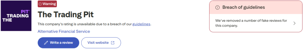 The Trading Pit has established a strong presence on Trustpilot, supported by a significant volume of community feedback over time. However, it is important to note that the company’s profile is currently restricted due to a violation of Trustpilot guidelines, reportedly related to the removal of certain reviews. This situation appears to be influenced by a surge of potentially misleading or inauthentic negative reviews, which can occasionally affect firms within the proprietary trading industry.