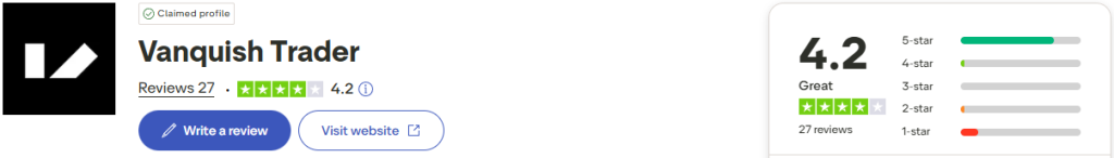 VanquishTrader has gathered a great score on Trustpilot based on their community’s feedback.