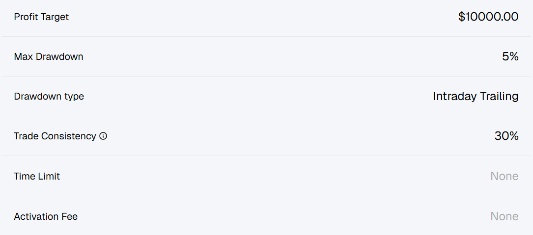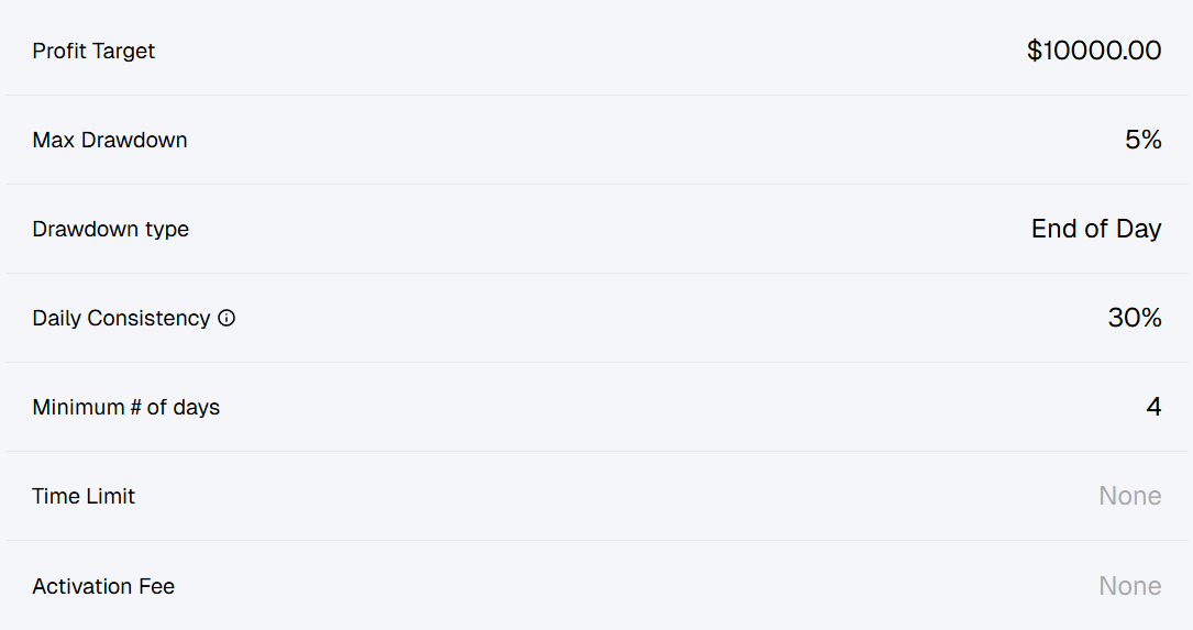 | Maximum Loss | 5% (End-Of- Day Trailing) | 6% (Trailing) |
