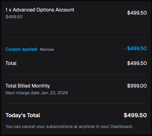 In conclusion, VanquishTrader differs from other industry-leading prop firms by offering two unique account types: an advanced options challenge and an options challenge. In addition, they also provide numerous favorable features, such as a 100% profit split, no contract or position size limitations, no activation fees, daily payouts (Options Challenge), an unlimited trading period, and no maximum daily loss limits.