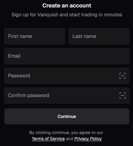 - Registration Form – Register with VanquishTrader by filling out the registration form with your personal details and logging into the dashboard.