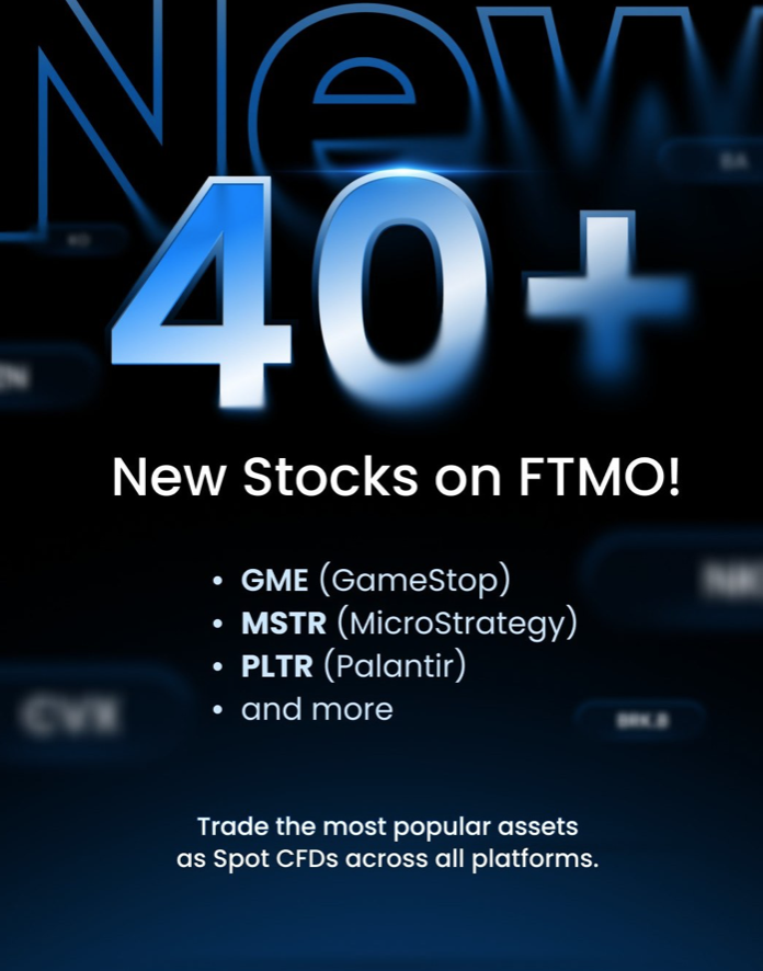 FTMO has widened its trading environment with the addition of new stock CFDs, giving traders access to some of the most actively discussed equities in the market. The update introduces popular tickers such as MicroStrategy (MSTR), Palantir Technologies (PLTR), and GameStop (GME), reflecting a move toward broader sector coverage within its platform.
