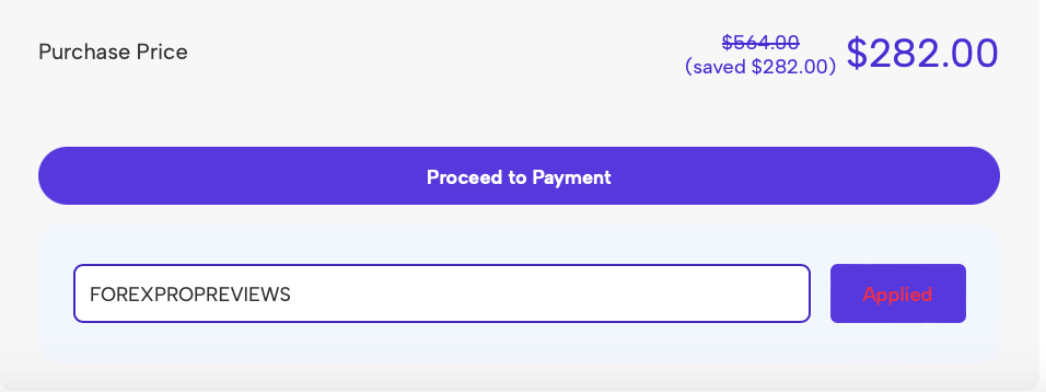 So, use our Discount Code (FOREXPROPREVIEWS) for a Massive 50% Discount or read the Review.
