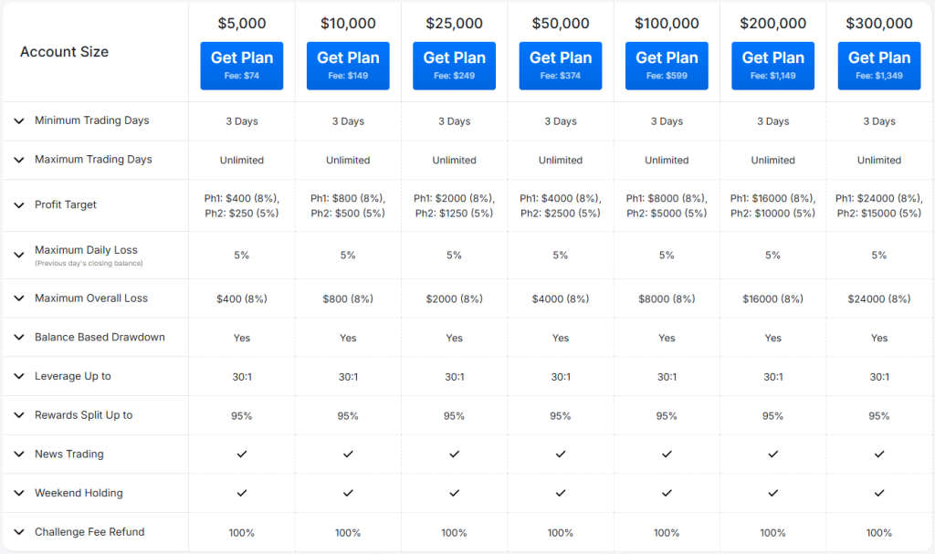 With account sizes ranging from $5,000 to $300,000 and leverage of up to 1:30, the Two-step Prime Challenge by Hola Prime is ideal for those seeking a transparent and supportive path to professional trading. Whether you’re a rising star or a seasoned trader, Hola Prime’s model rewards performance, not luck, offering a real opportunity to turn trading skills into funded success.
